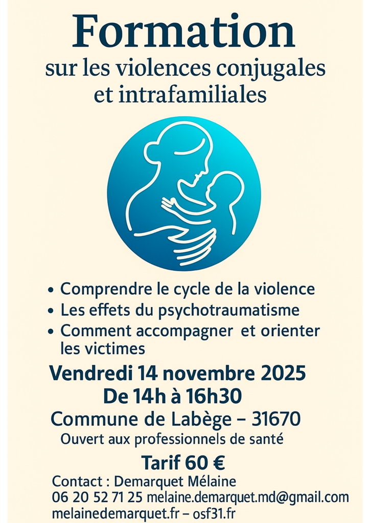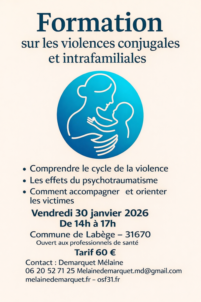 Une formation sur les violences intra-familiales est pré-requise pour toute nouvelle ostéopathe qui souhaite assurer des permanences bénévoles. Cette formation est proposée par OSF31.